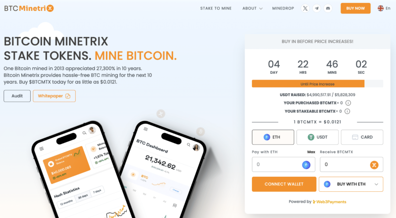 Bitcoin Minetrix ($BTCMTX) is benefiting from the fair wind lifting Bitcoin. The new token is especially well-positioned due to its direct relationship with the Bitcoin ecosystem through the unique tokenized way in which it mines BTC via the cloud.