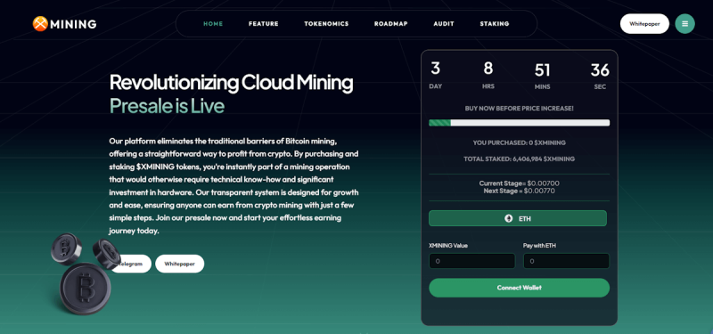 X Mining introduces an innovative cloud mining solution designed to make Bitcoin mining accessible and profitable for a broader audience. By leveraging blockchain, X Mining’s platform allows individuals to participate in mining operations by purchasing and staking $XMINING tokens.